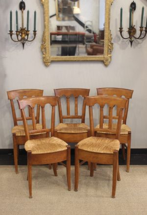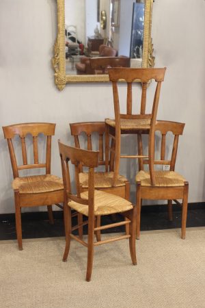 5 SILLAS TALLADAS EN MADERA DE NOGAL. ÉPOCA DIRECTORIO FRANCIA S.XVIII