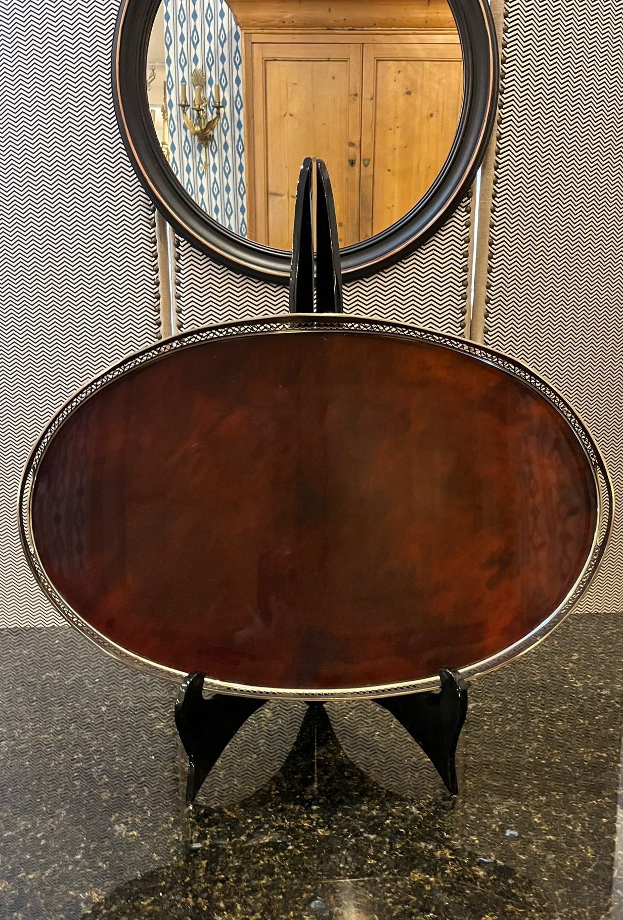 BANDEJA DE BAQUELITA Y ALPACA PLATEADA