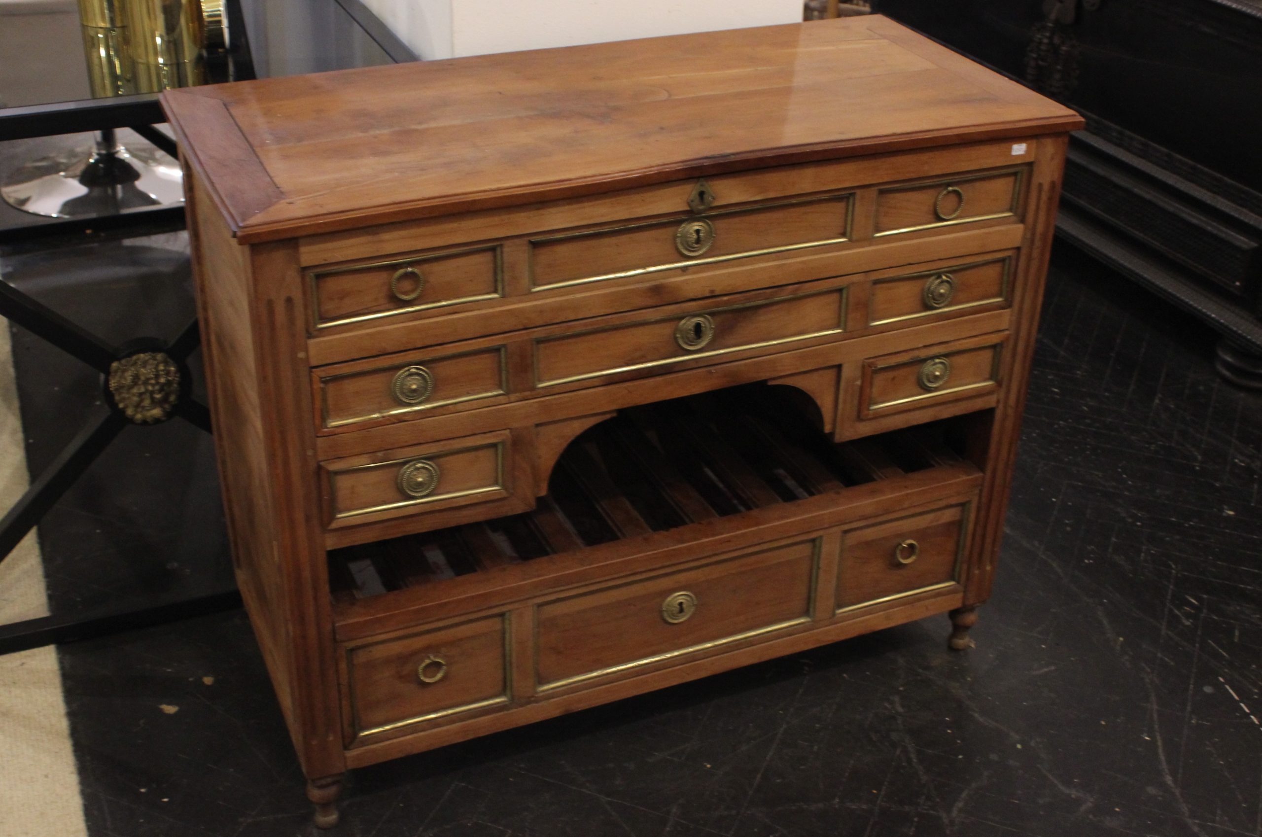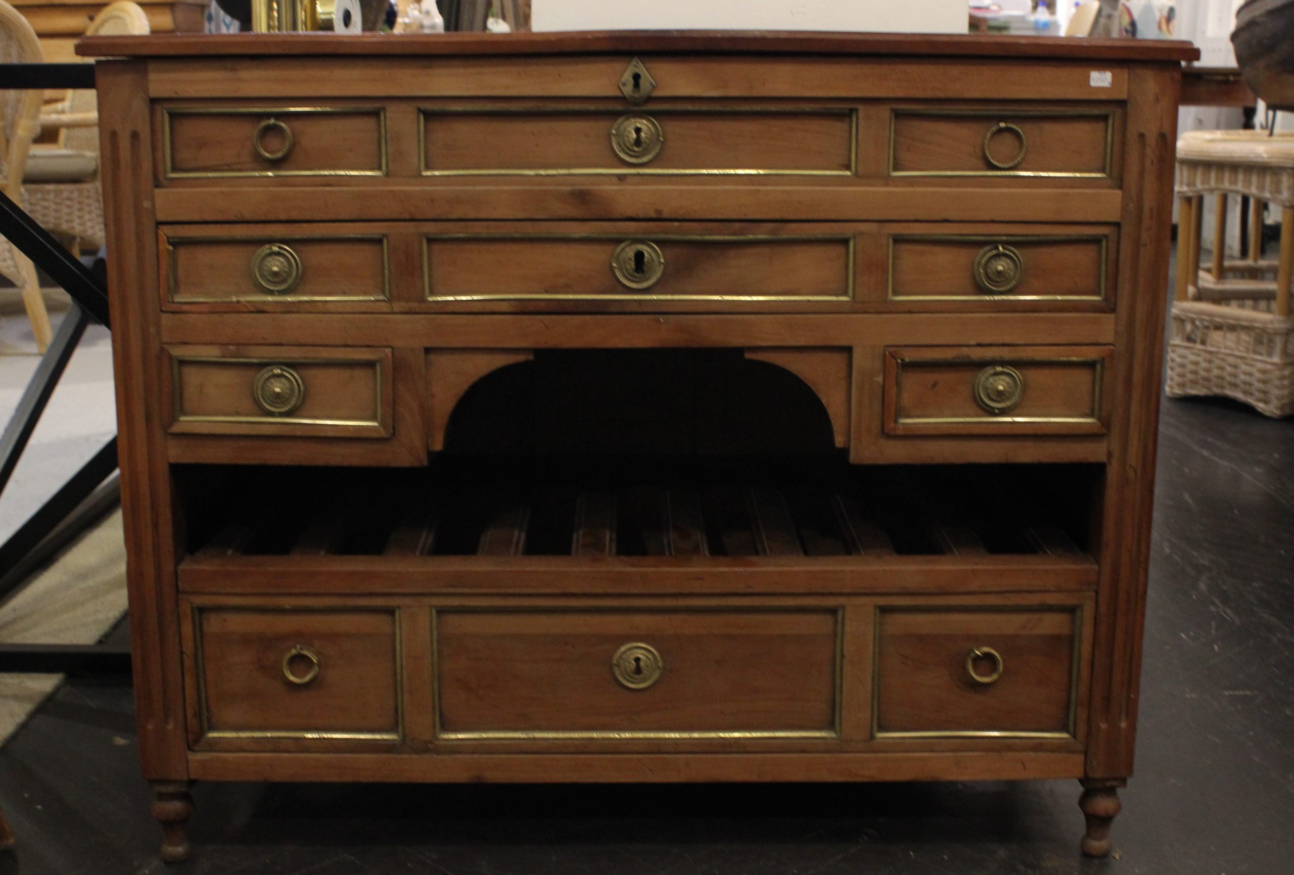 COMODA TOCADOR LUIS XVI FRANCIA SIGLO XVIII, MADERA CON FILETEADOS DE LATÓN E INTERIORES ENTELADOS