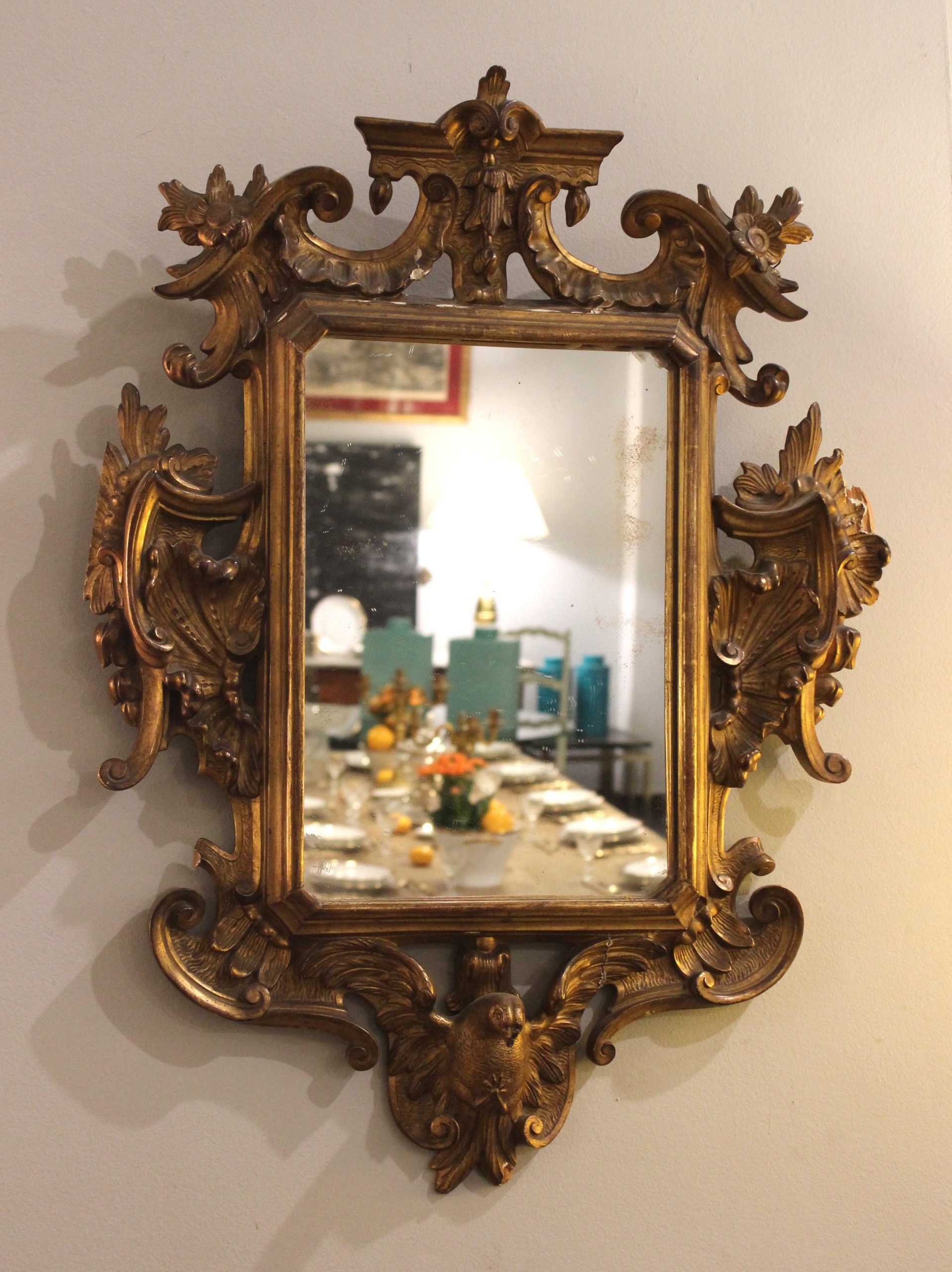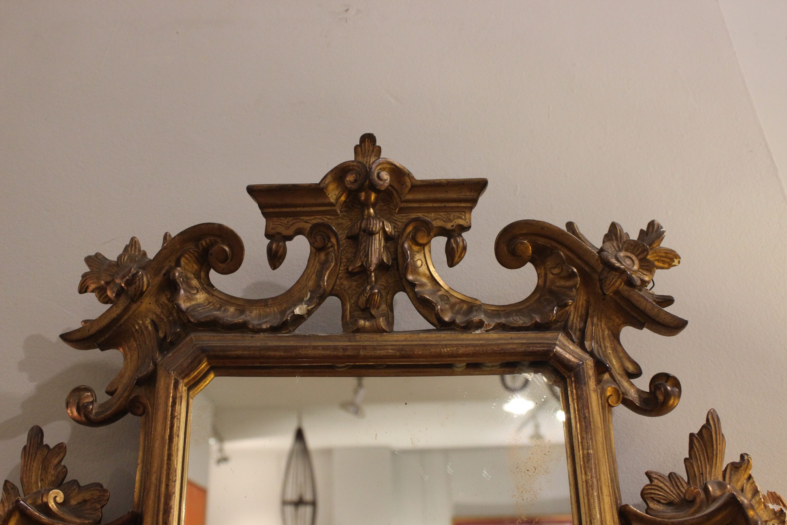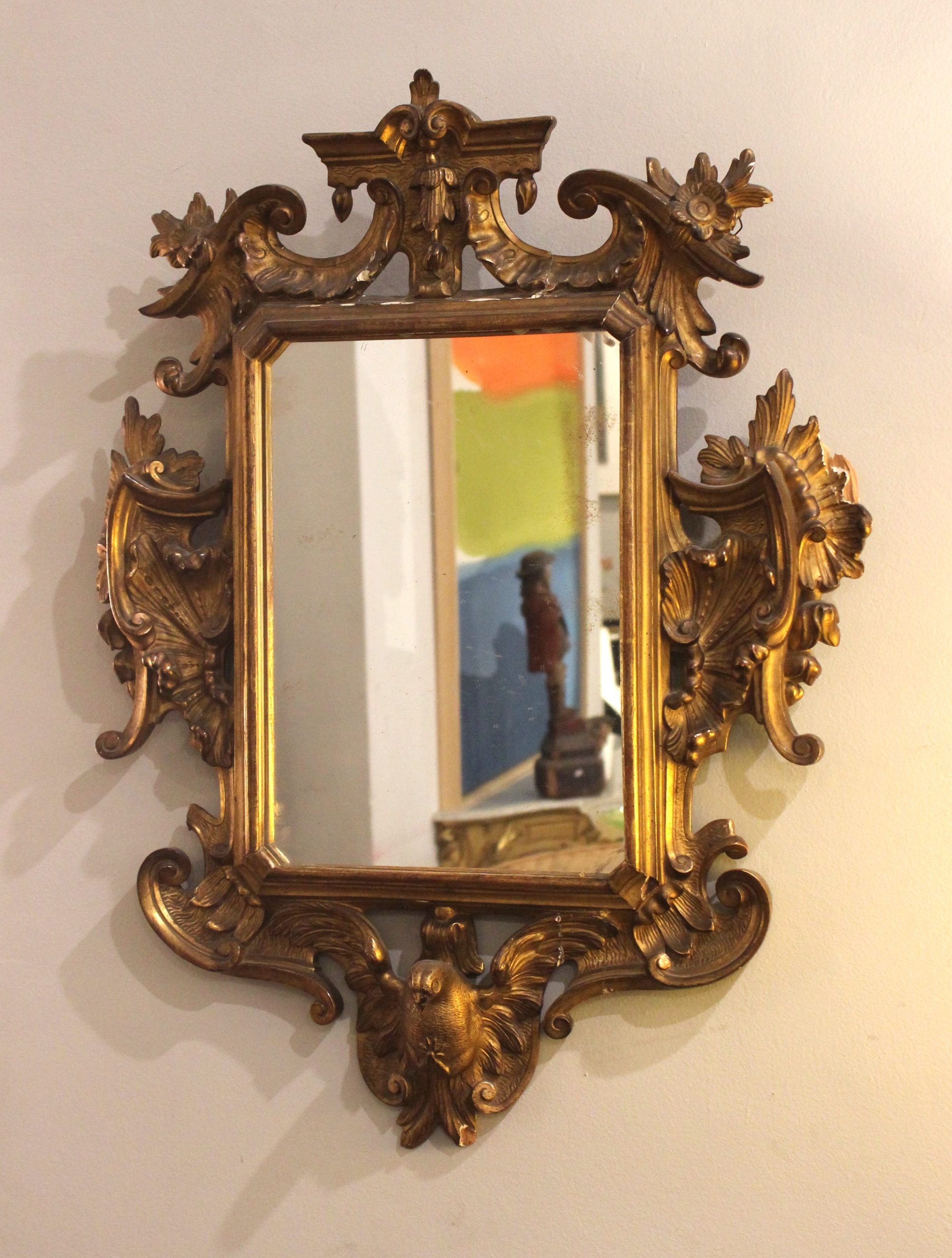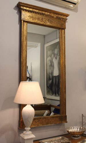 Espejo Cornucopia Estilo Imperio siglo XIX en madera tallada y dorada.