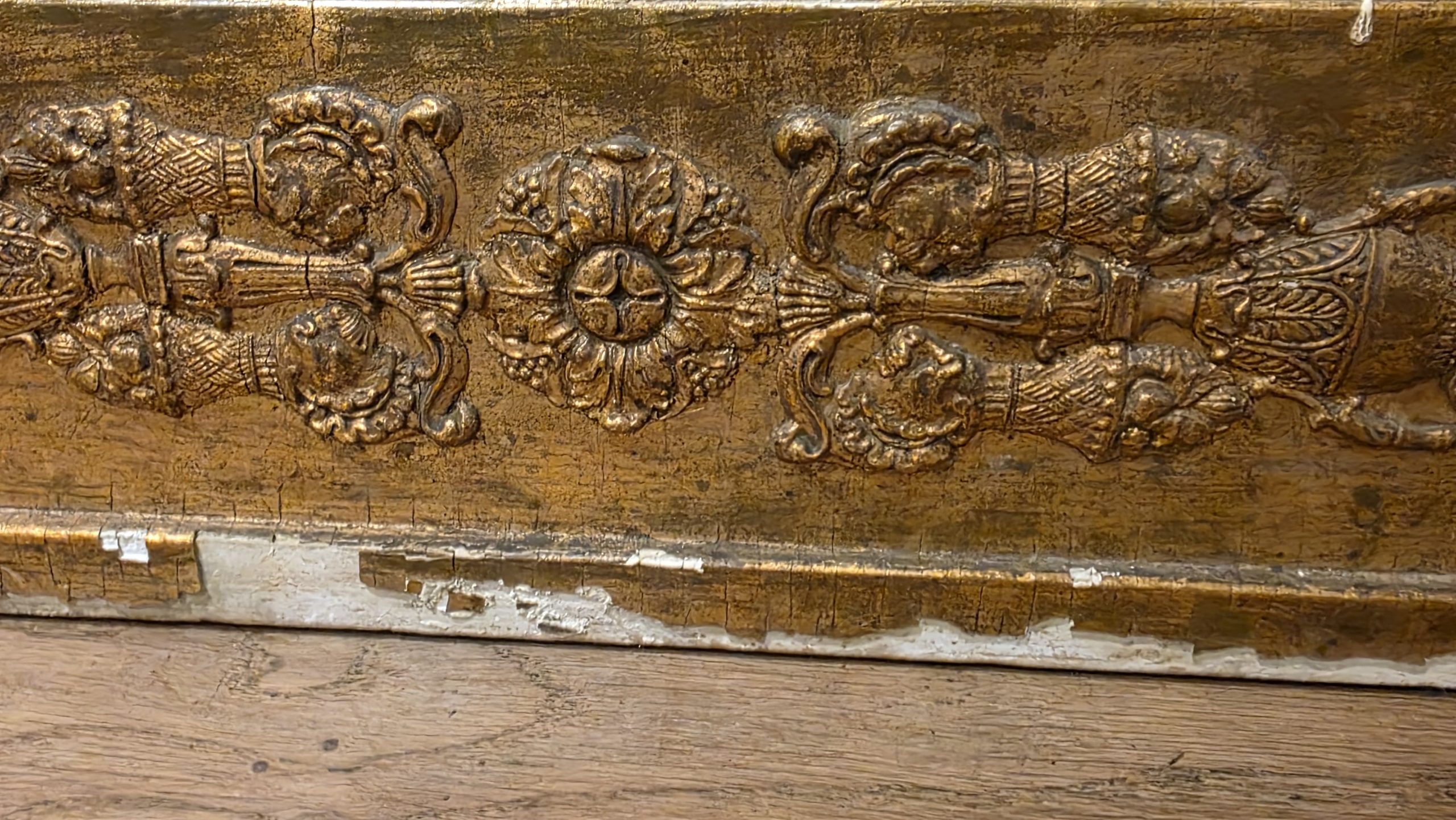 Espejo Cornucopia Estilo Imperio siglo XIX en madera tallada y dorada.