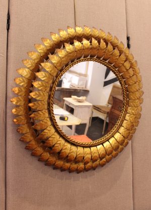 Espejo Sol Lámpara en hierro y pan de oro años 50