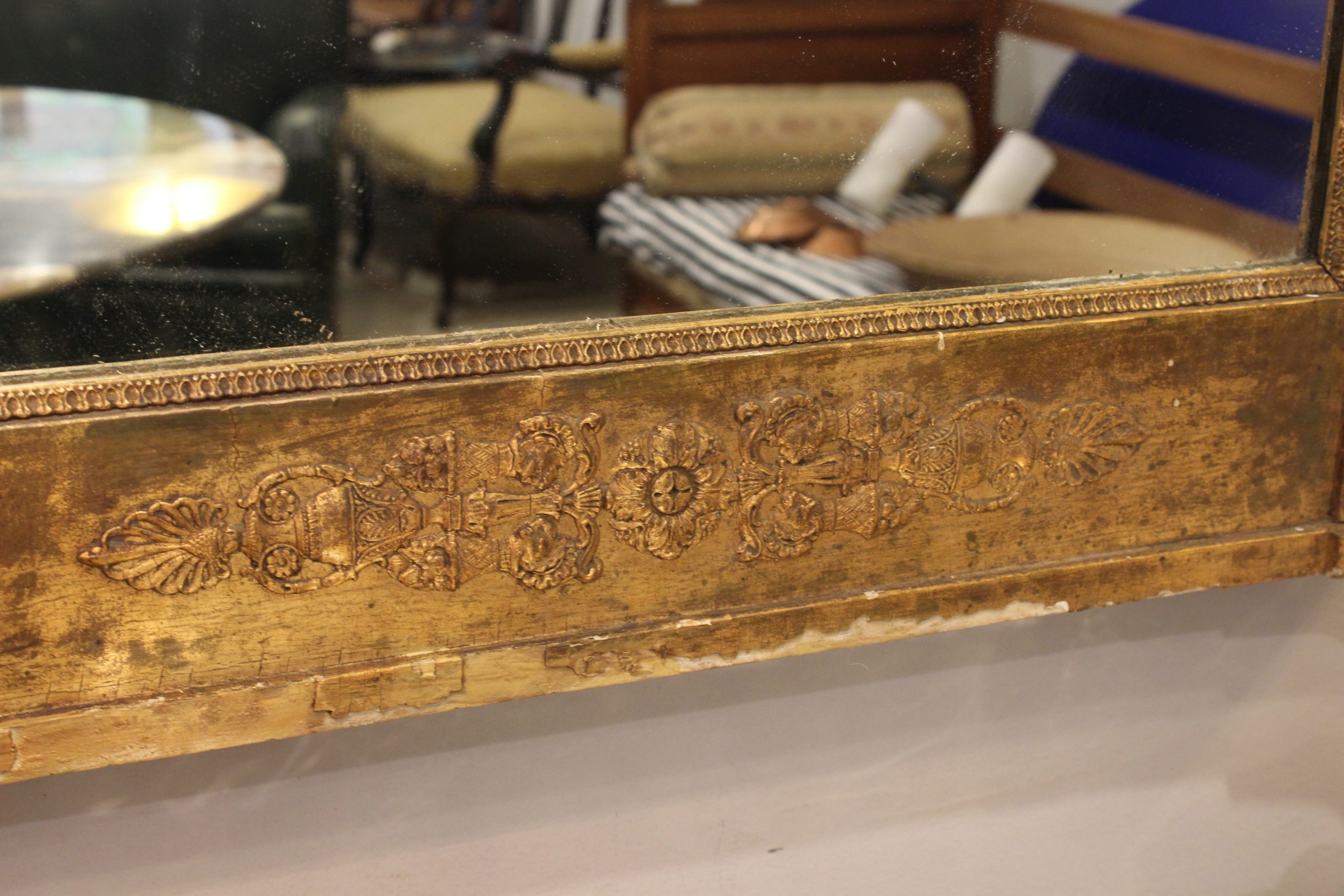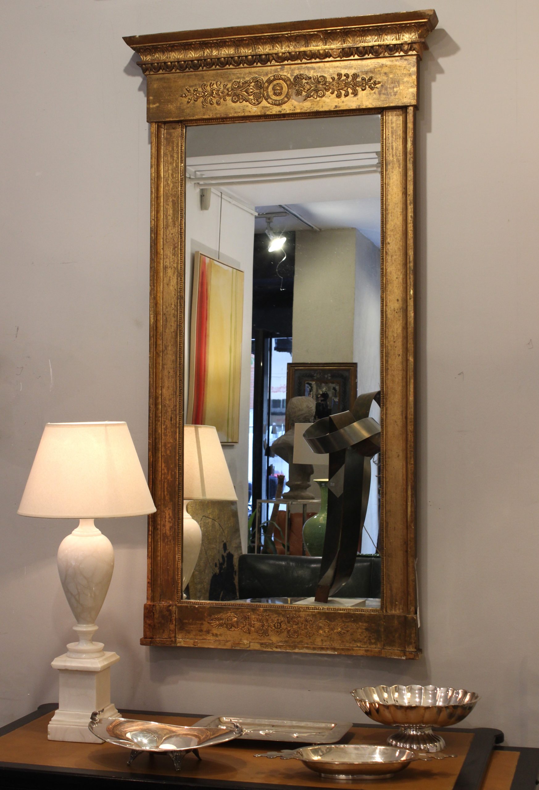 Espejo Imperio con cornisa principios siglo XIX en madera dorada