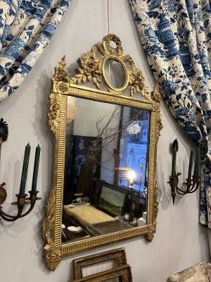 Espejo Cornucopia Estilo Imperio siglo XIX en madera tallada y dorada.