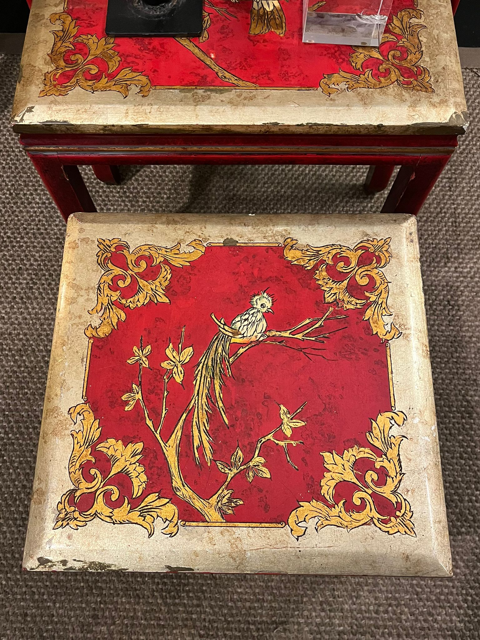 JUEGO DE MESAS NIDO, LACA ROJA CON CHONOISERIES