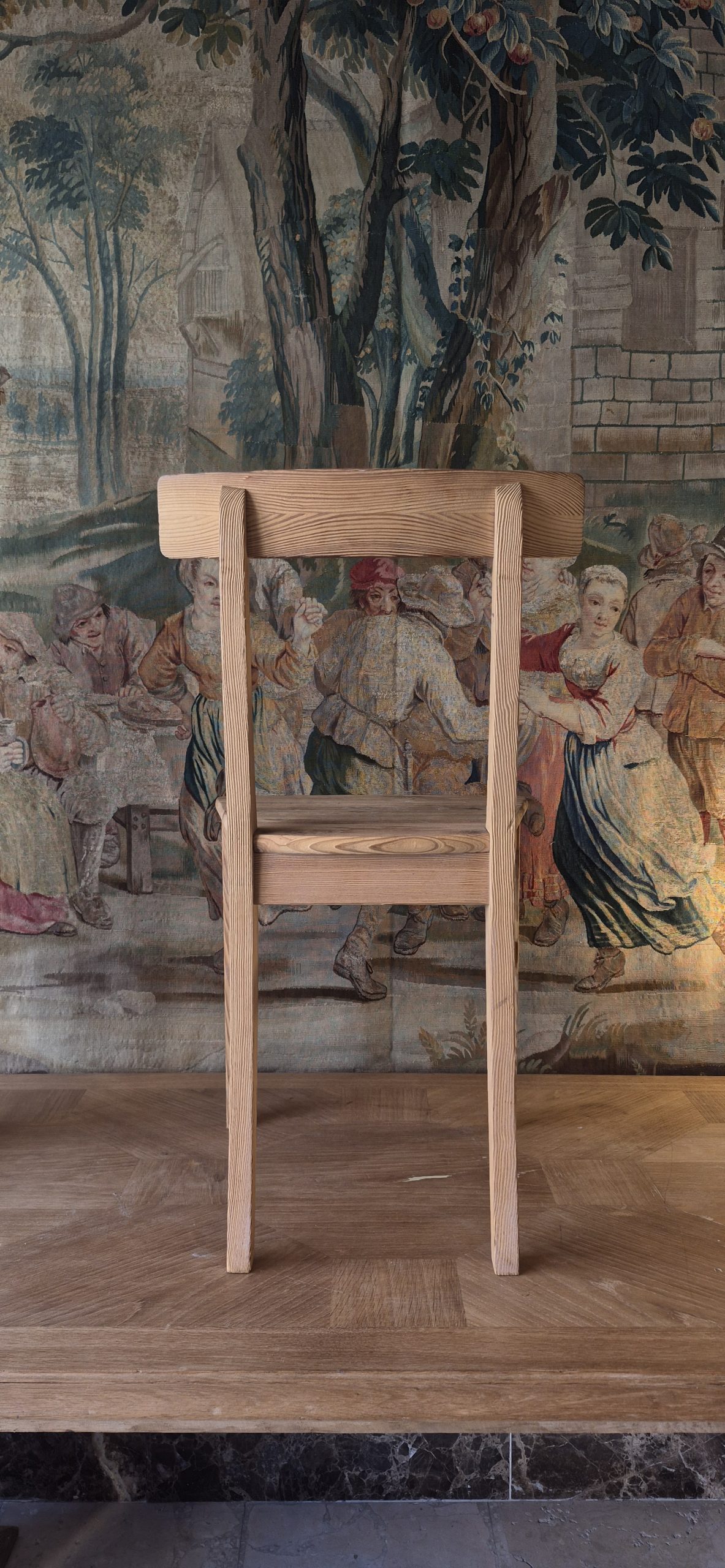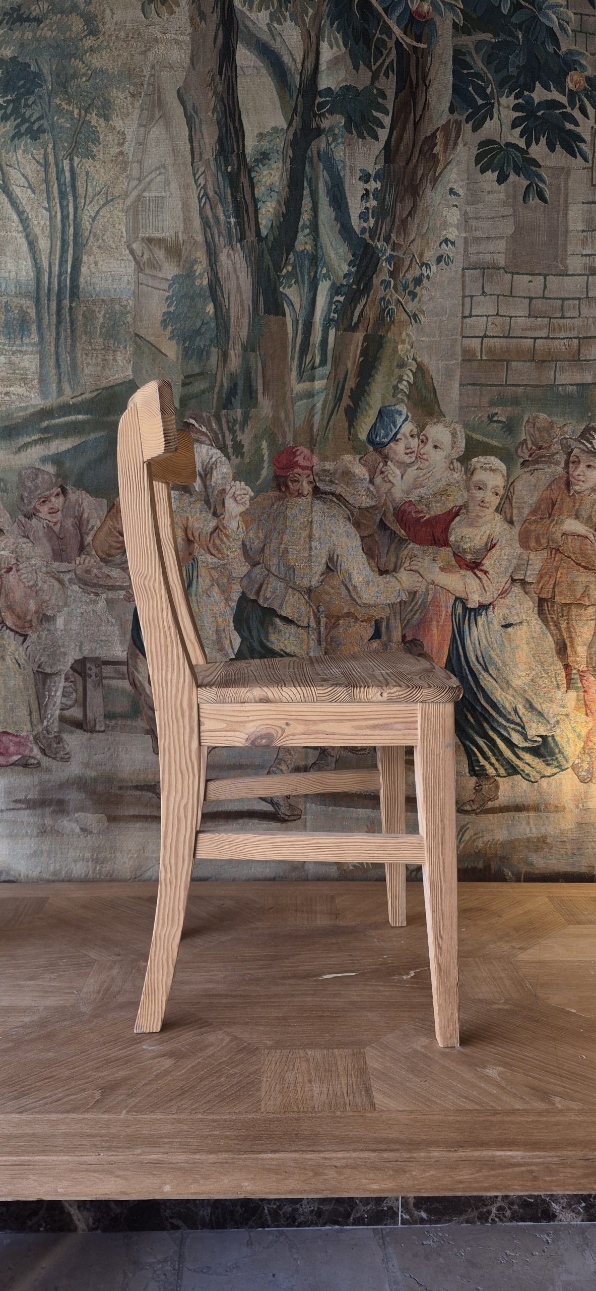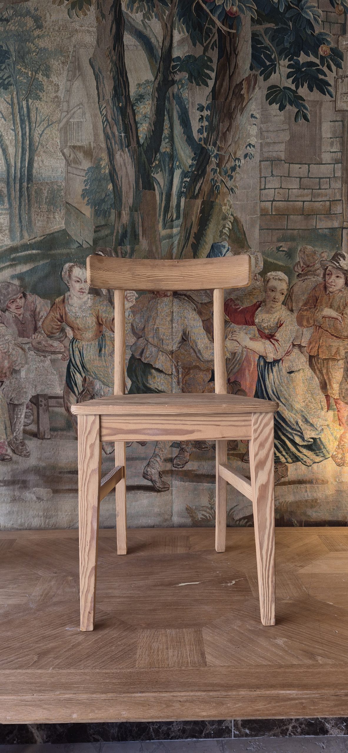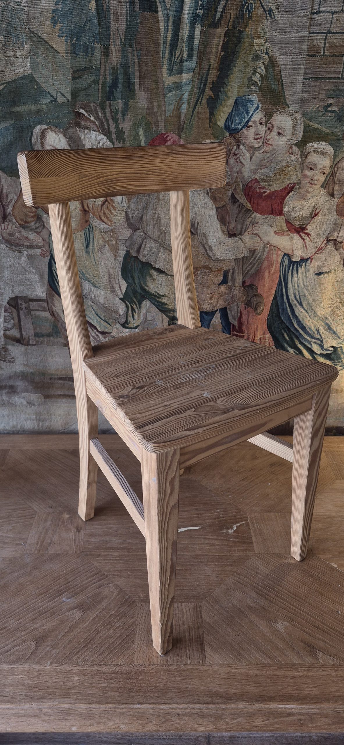 Juego de 6 sillas estilo directorio. Madera de pino de melis.