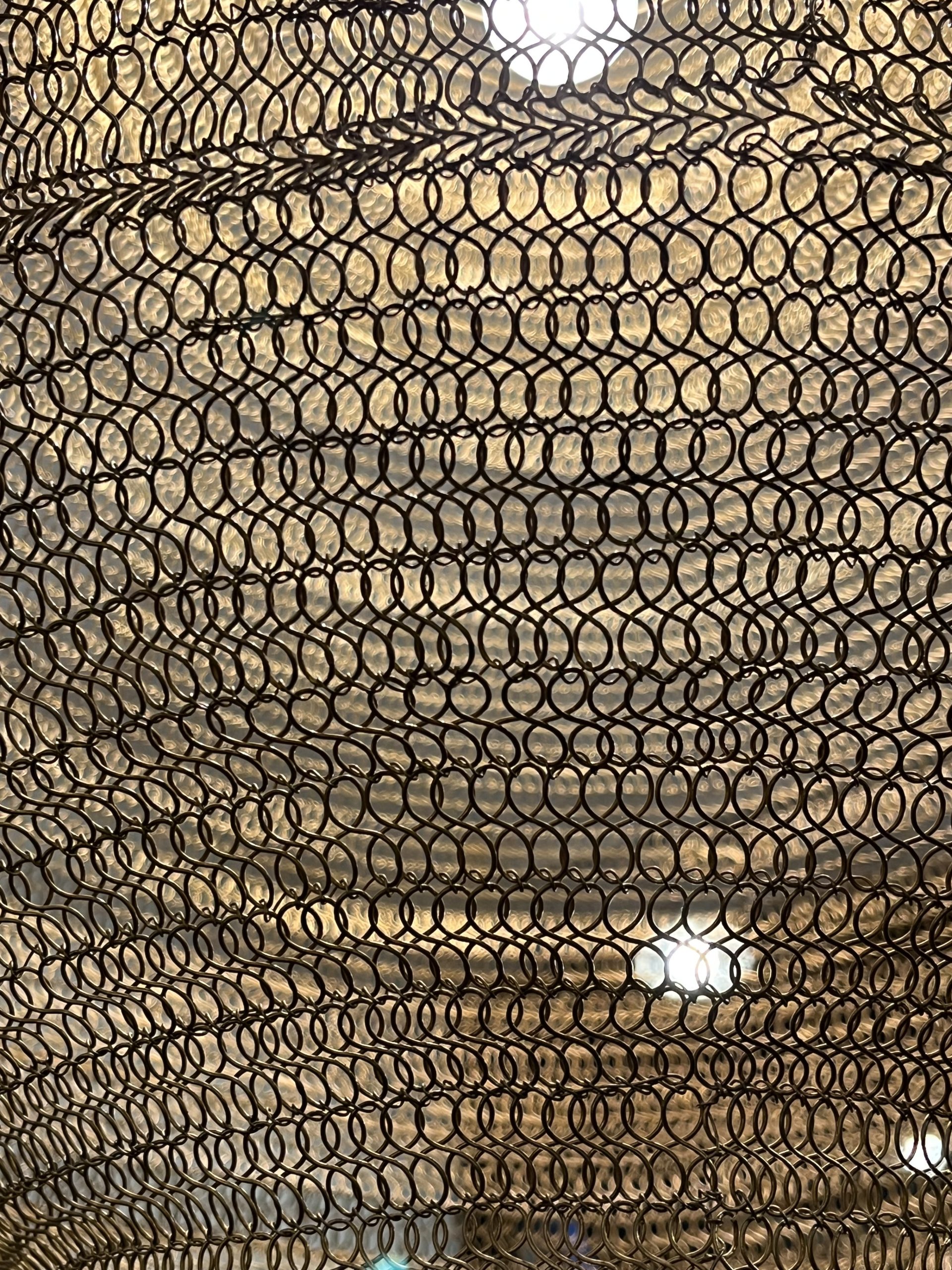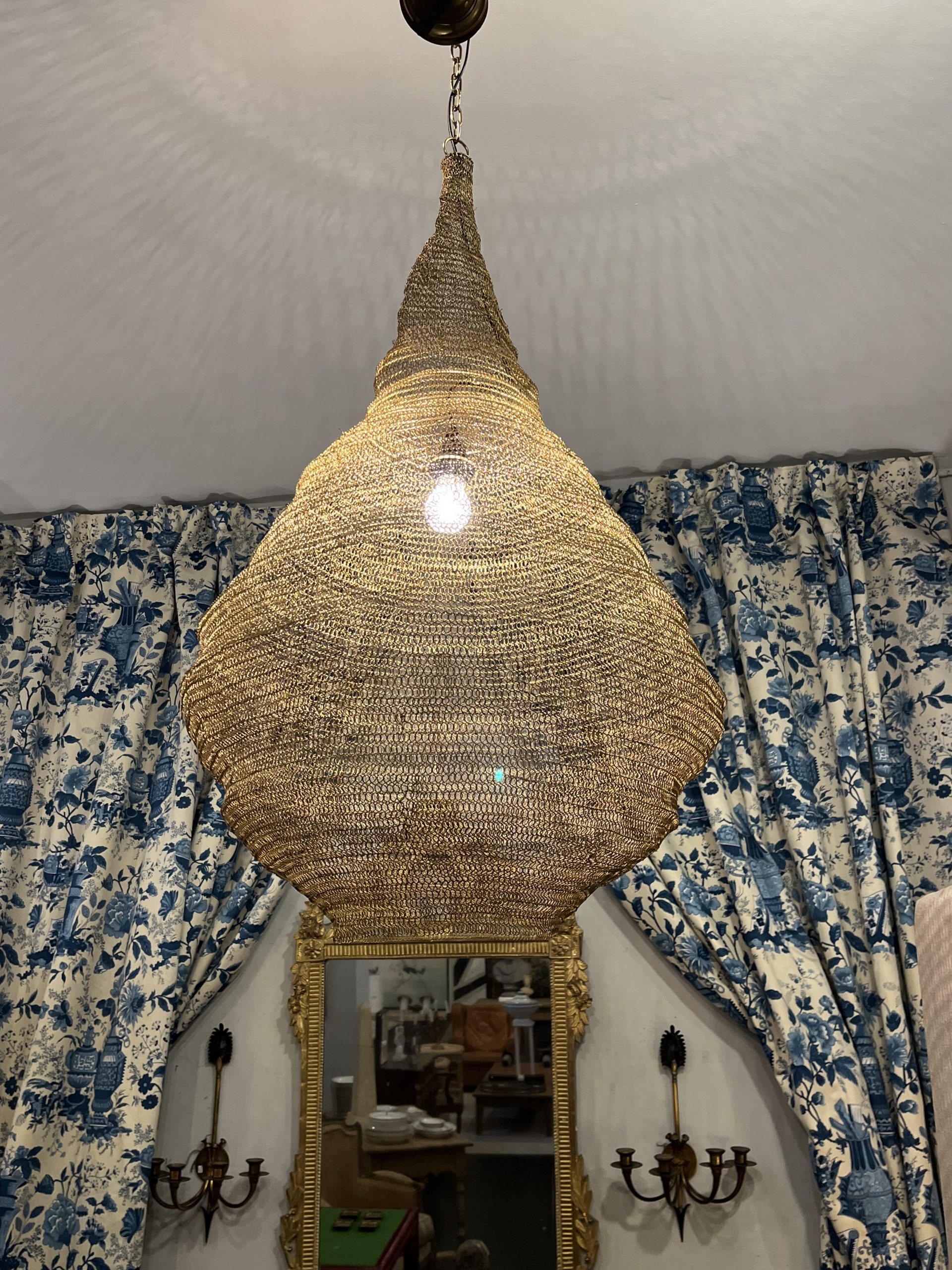 LAMPARA DE MALLA DORADA TRENZADA A MANO