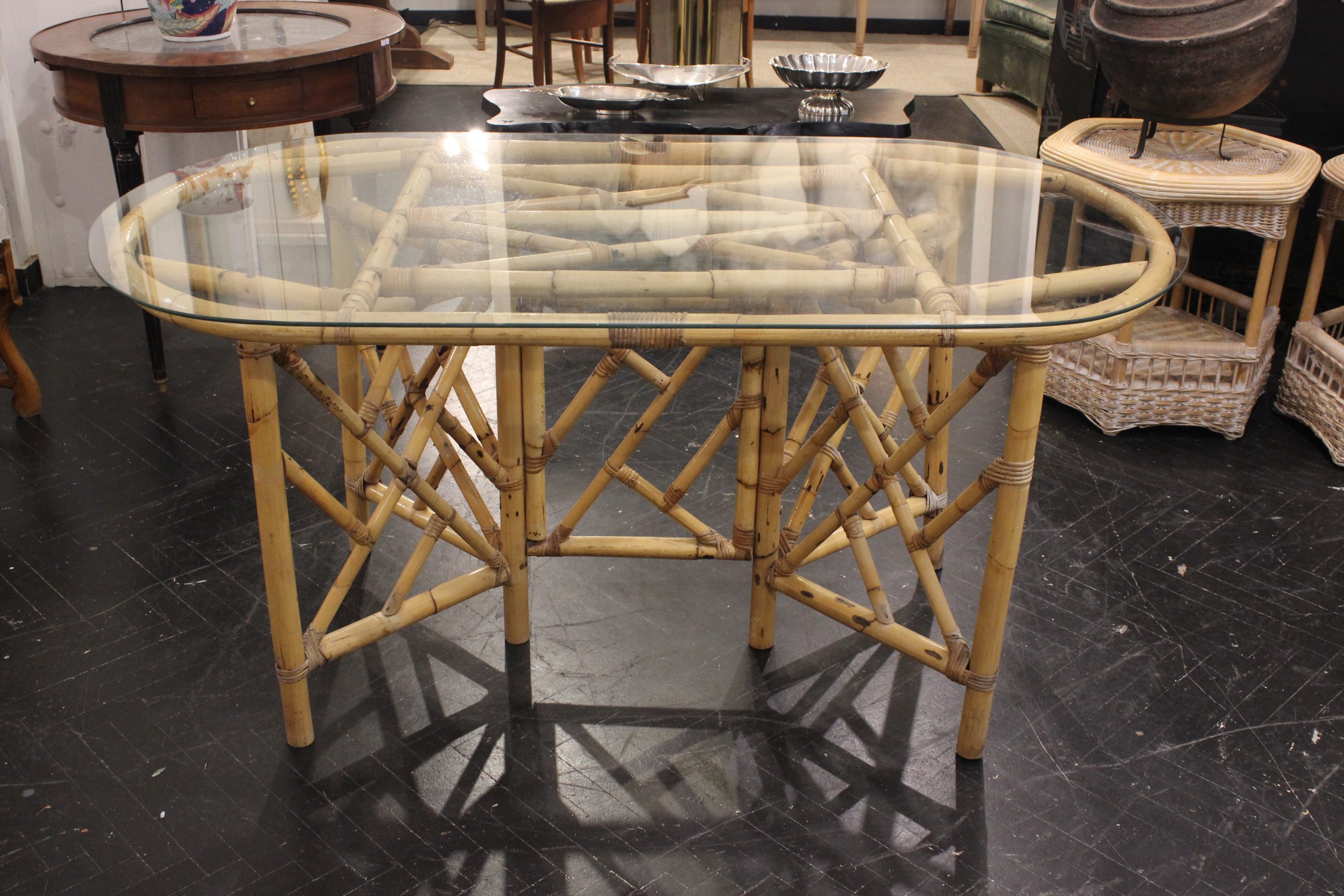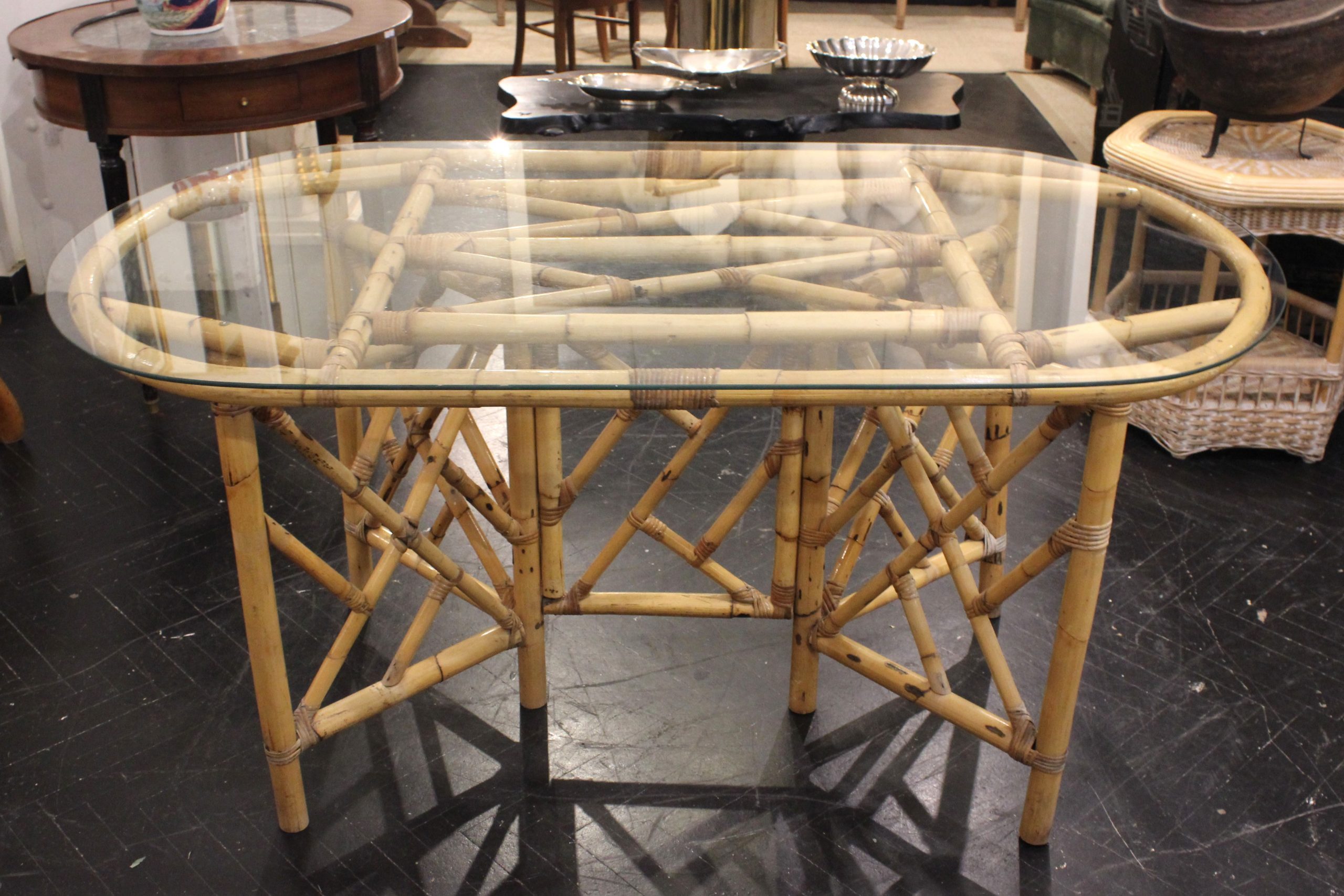 MESA CRISTAL CAÑA DE BAMBÚ AÑOS 60