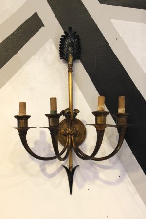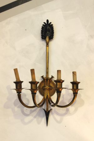 Pareja de Apliques de 3 Luces en Bronce con Relieve de Cisne
