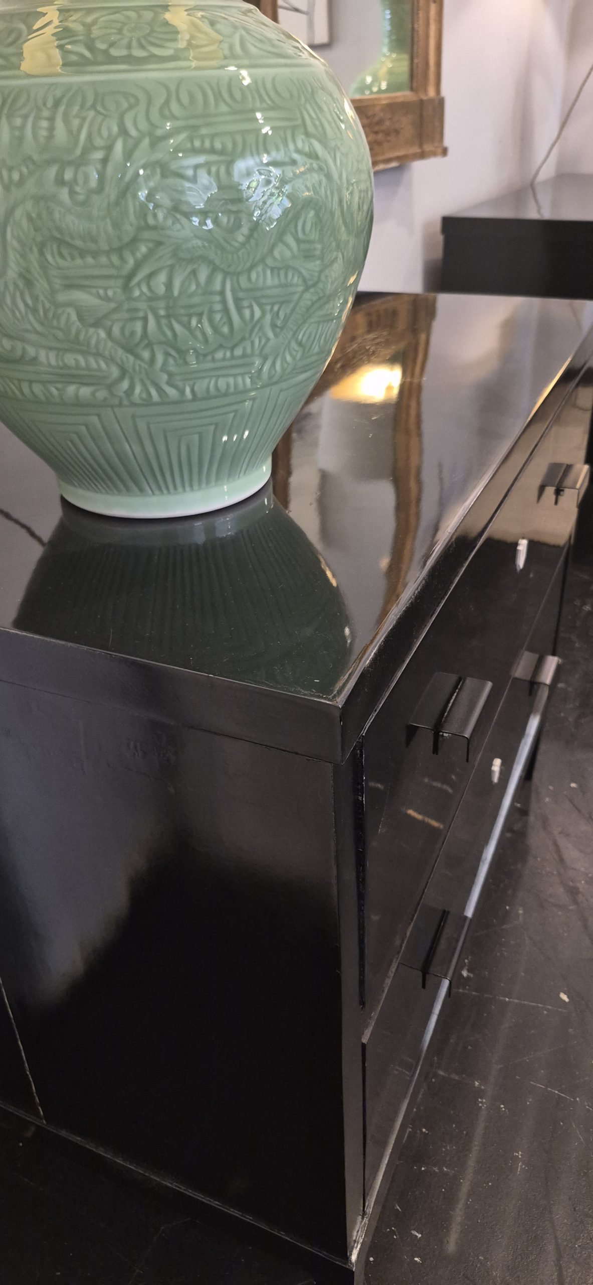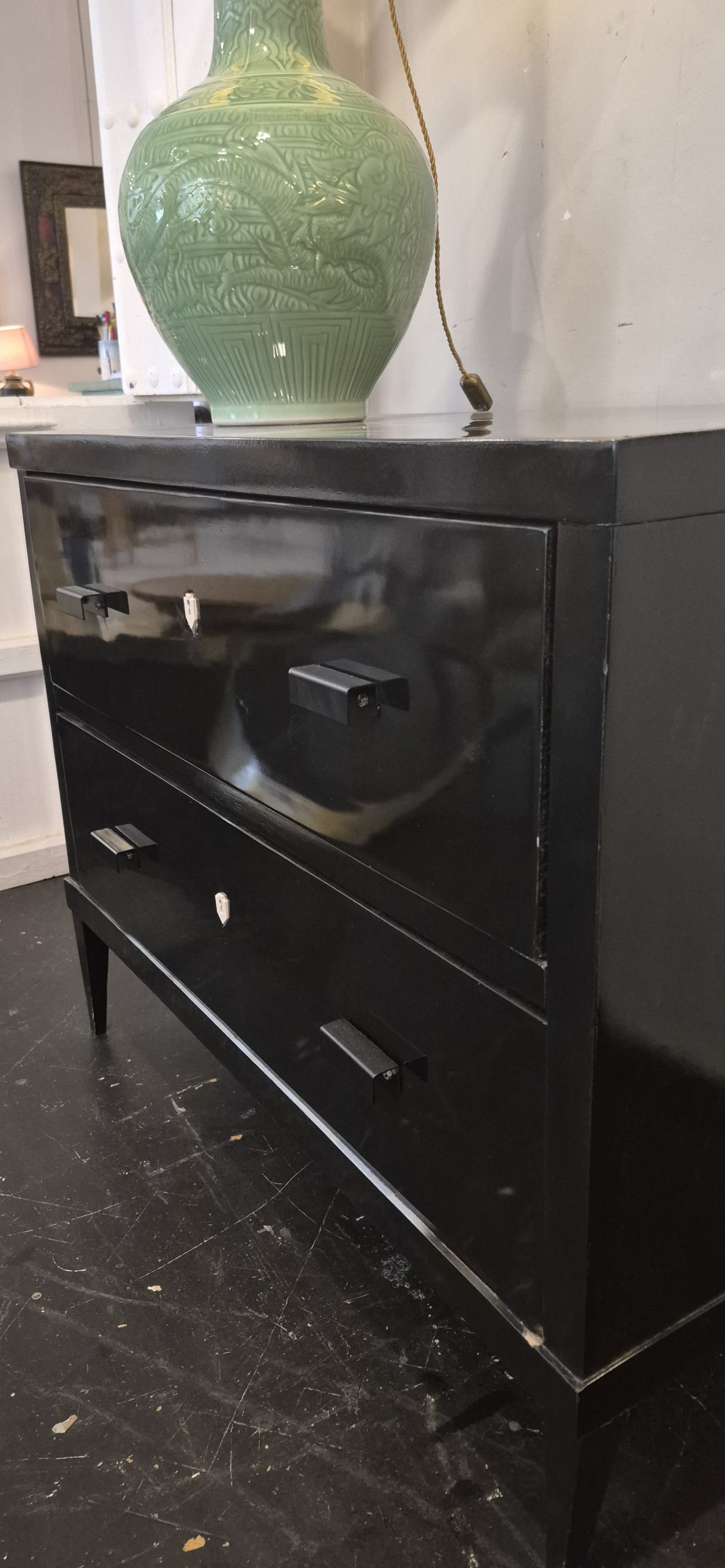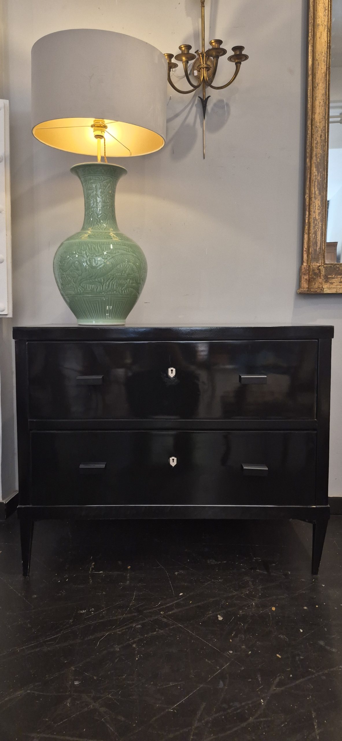 Pareja de comodas de estilo Luis XVI lacadas.