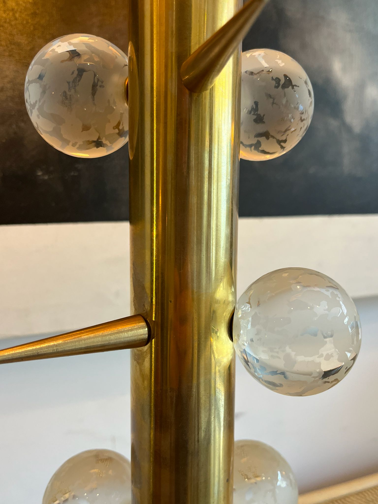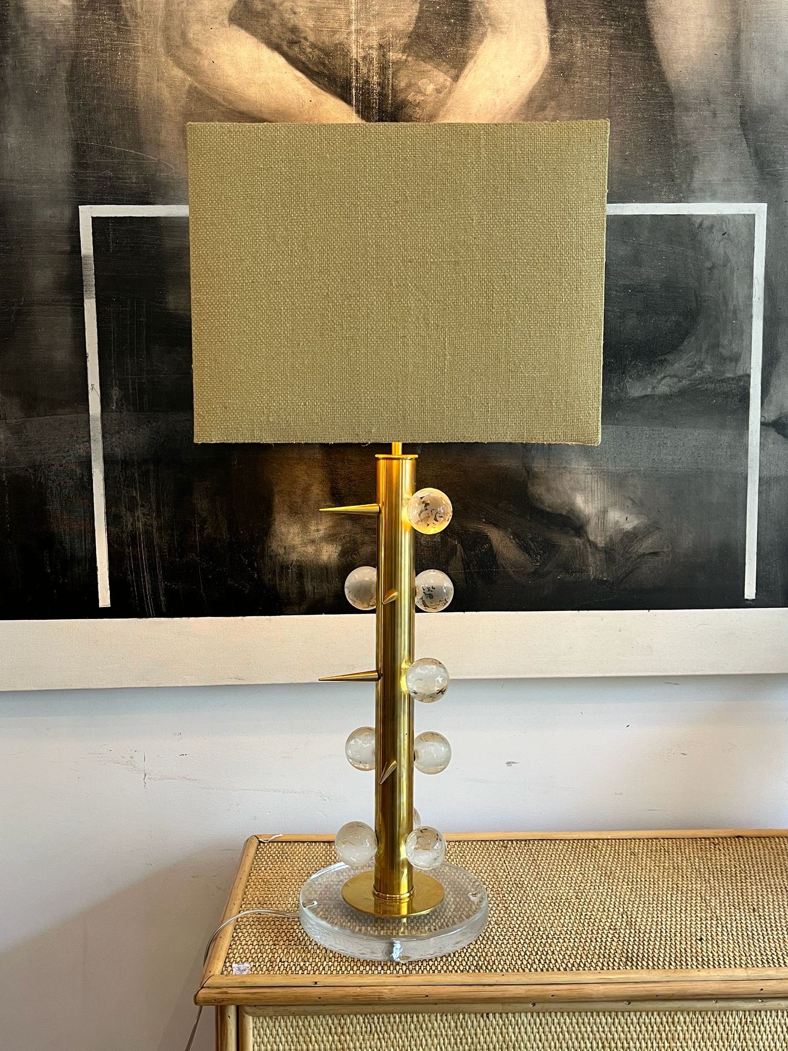 PAREJA DE LAMPARAS ITALIANAS, AÑOS 70, CRISTAL DE MURANO Y LATÓN