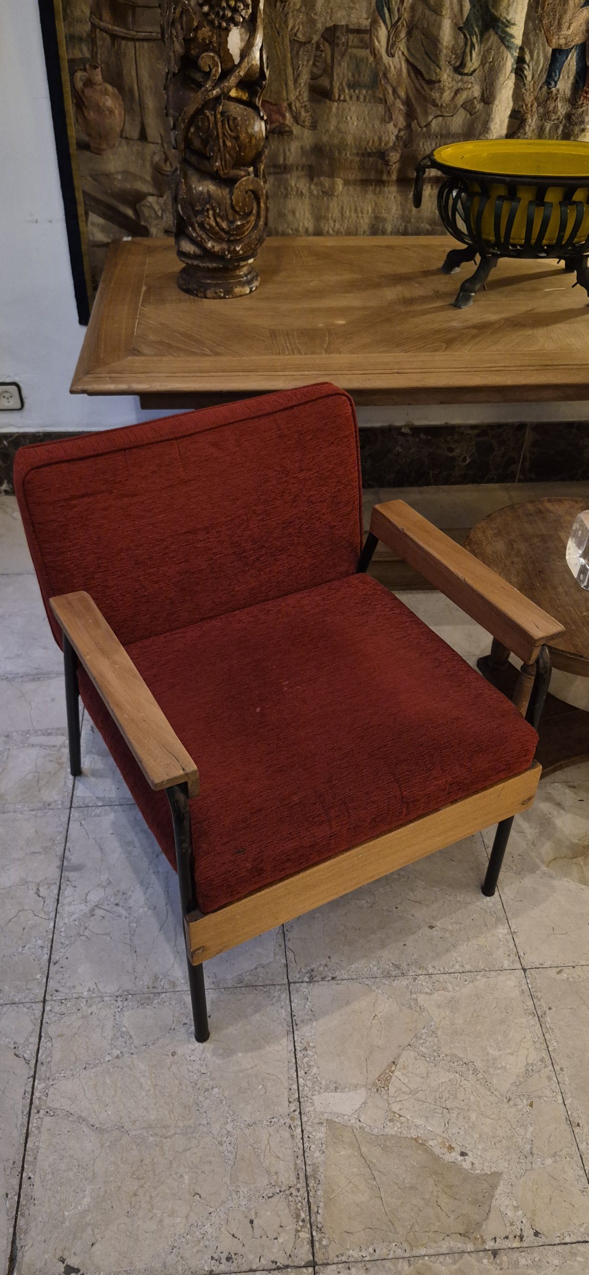 Pareja de sillones con estructura en hierro y madera. Italia años 60.