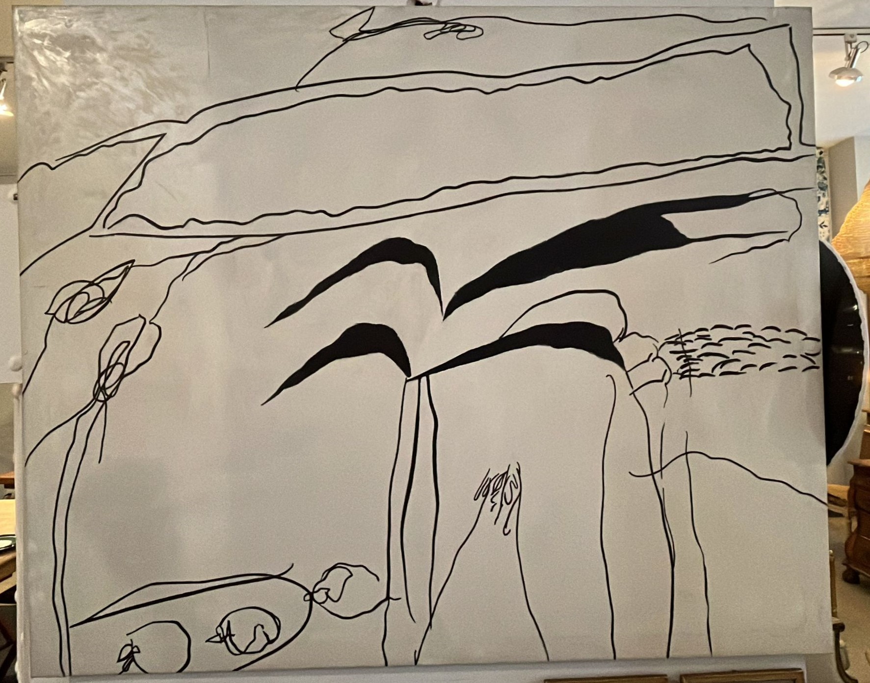 PINTOR CONTEMPORANEO, CARACTERISTICO POR SU OBRA MULTIDISCIPLINAR DE MARCADO DIALOGO CRITICO. ESTA OBRA PERTENECE A LA SERIE «BLANCO Y NEGRO», PIEZAS CONCEPTUALES DONDE PRESCINDE DE LA PERCEPCION SENSORIAL DEL COLOR PARA CENTRARSE EN LA IDEA Y SU COMPRENSION INTELECTUAL. LA LINEA ES EL SIGNO VISUAL FUNDAMENTAL ENTRE LA ABSTRACCION Y EL GESTO.